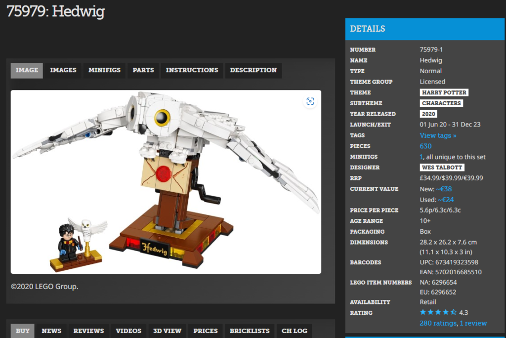 Brickset – LEGO 75979 Hedwig | Brickset